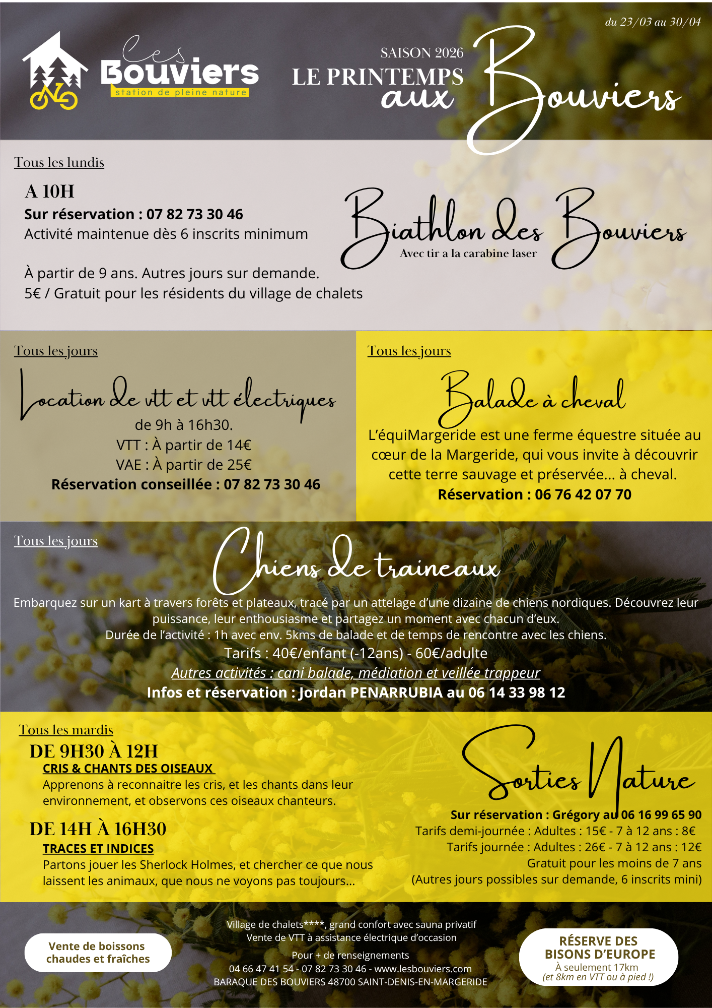 Pour les aventuriers sur deux roues, la station des Bouviers vous fera bénéficier d’un cadre idéal pour de longues promenades à VTT ou VTT VAE.